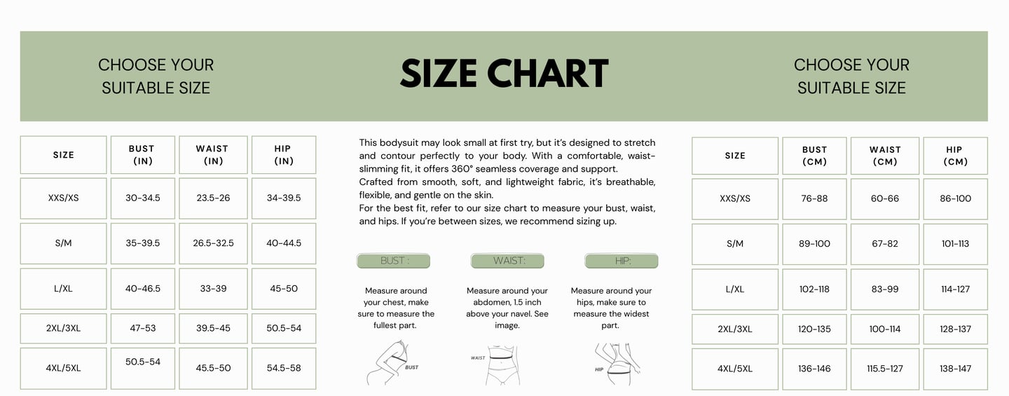 Our shapewear comes in sizes XS through 5XL to fit all body types comfortably.